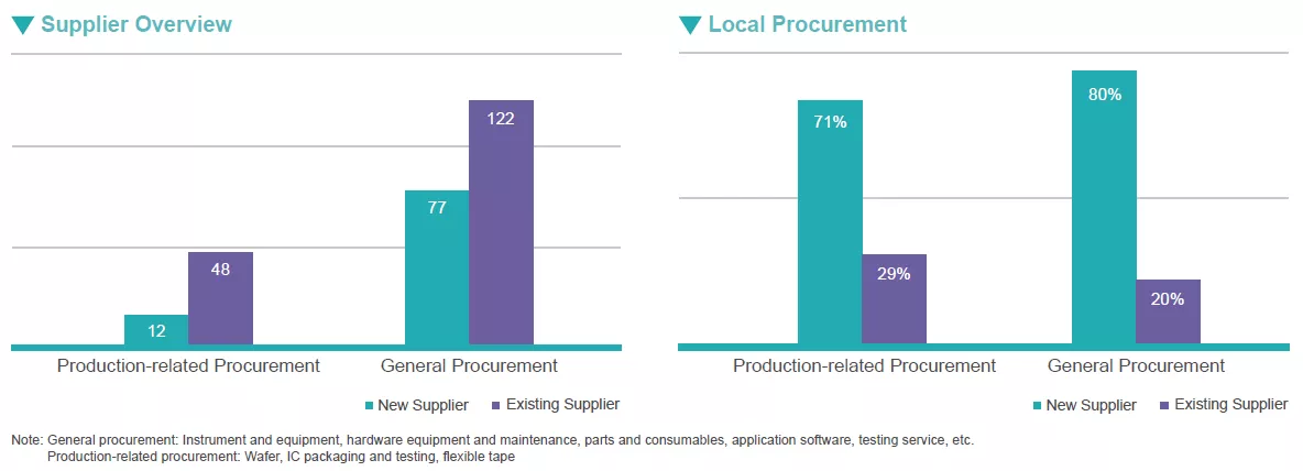 In 2021, we worked with 259 suppliers, among which 89 were new suppliers. The total procurement amount was about NT$11.5 billion, wherein $8.2 billion were spent on local procurement, occupying 71% of the total amount.
