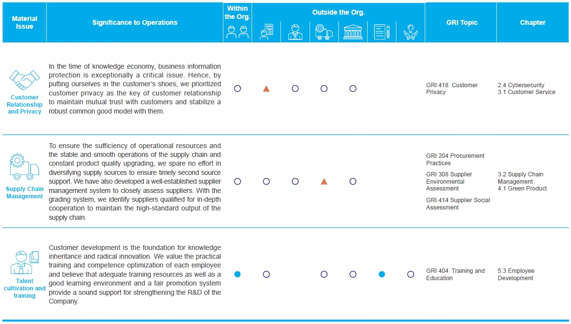 We identify priority for the issues stakeholder concerned after we surveyed by following "Sustainabiliity Context", "Materiality",  "Completeness" and "Stakeholder Inclusiveness".