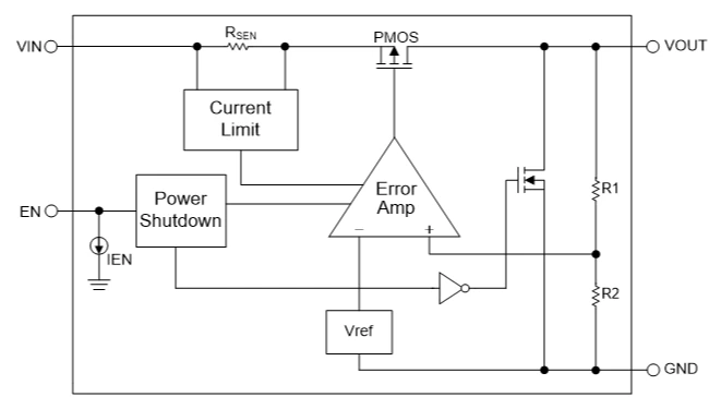 The FP6715 regulator is able to operate with output capacitors as small as 1µF for stability. The FP6715 fault protection includes the current limit protection and current foldback protection.