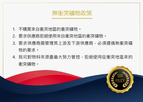 天鈺科技2020年共採購133家貴金屬客戶/供應商,已全數接受並完成我們的盡責調查,確認來源100%源於合格冶煉廠。