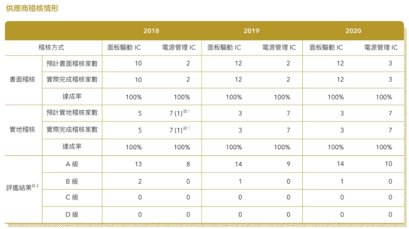 2020 年,我們合作之供應商共有69家(25家原物料供應商;44家外包供應商),其中新增之供應商有7家,2家為關鍵供應商註。上述供應商已全數通過ISO 14001環境管理系統驗證作業;其中主要原料(晶圓)之供應商有4家,與本公司維持長期合作關係,品質、貨源均相當穩定,供給情形良好順暢。
